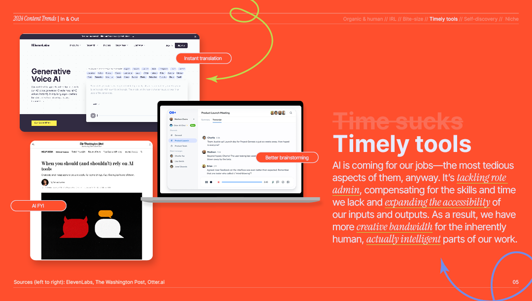 After the success of our annual Design Trends Report, our content team wanted to mirror our approach, curating key trends shaping the industry in 2024. They asked me to help bring this new Content Trends Report to life, just as I had for our design team. I was thrilled to contribute by designing visuals that made their insights engaging, impactful, and shareable.