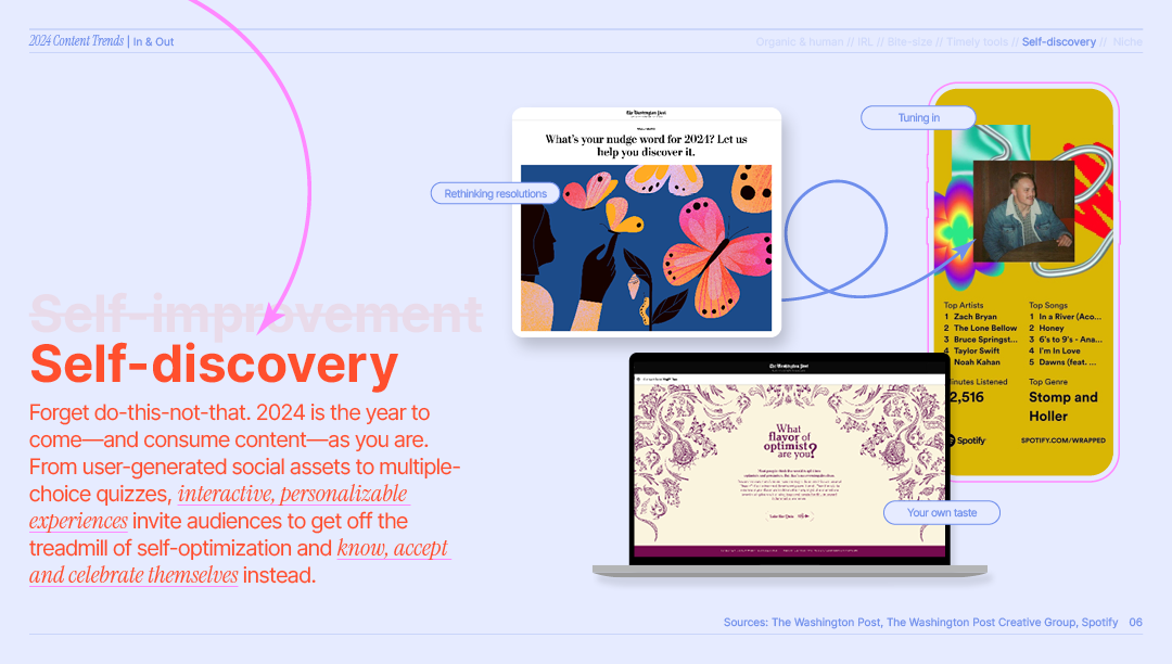 In 2024 I helped lead the design and execution of our design team’s annual Design Trends Report, helping to continually position the WP Creative Group as industry thought leaders and keep our work innovative and forward-thinking. I then translated these insights into animated social content across all our Washington Post Creative Group channels ensuring the report was both visually compelling and widely shareable. This project positioned our team as industry thought leaders while keeping our work innovative and forward-thinking.