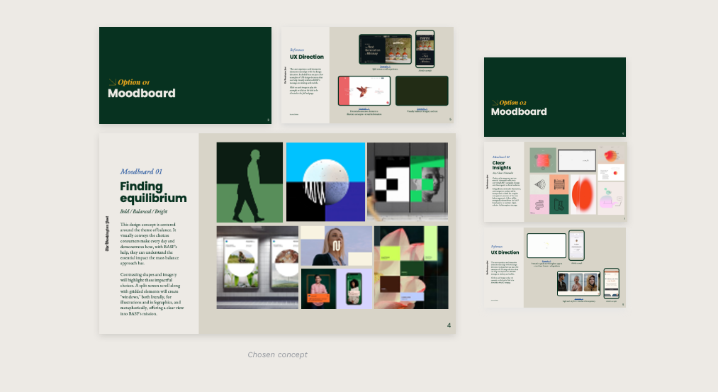 Rooted in the theme of balance, this design concept illustrates the everyday choices consumers face and how BASF’s mass balance approach helps clarify their impact. Contrasting shapes and split-screen scrolls highlight these decisions, while gridded “window” elements—both literal and metaphorical—offer insight into BASF’s mission.